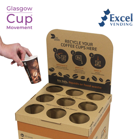 Excel Vending is teaming up with Cup Movement® in Glasgow to give away up to 200 innovative cup recycling boxes for free, as part of efforts to reduce cup waste.